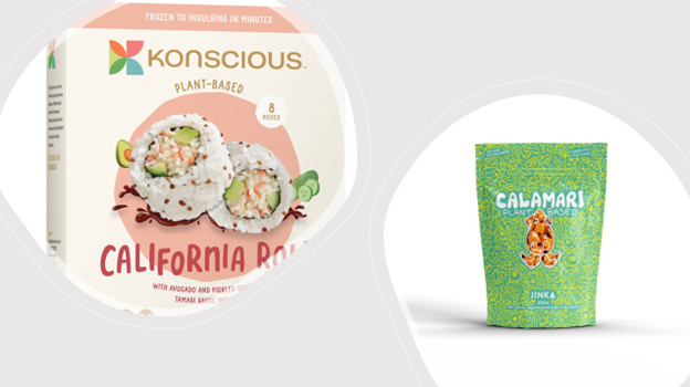 Lastly, vegan and plant-based products continued to take a lot of the expo halls’ real estate with a total of 1,118 booths. However, it seems that we have now entered a 2.0 plant-based phase, in which products need to be tasty, innovative, sustainable, and mission-driven. Plant-based companies need to have a special edge or customer appeal to thrive in the face of heightened competition. We tried some interesting and innovative seafood alternative products such Jinka’s plant-based calamari and Konscious Foods’ frozen, plant-based California rolls.